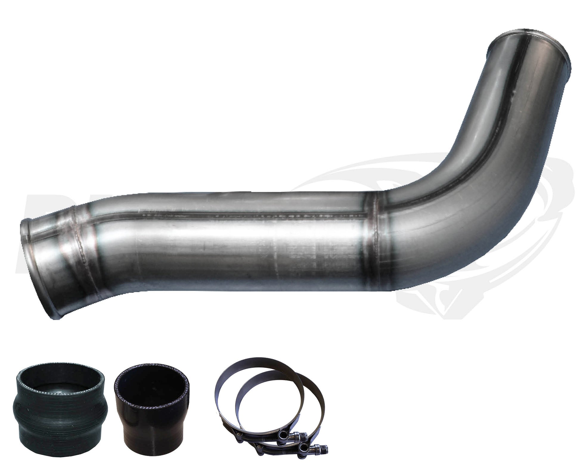 Our 3.5" MEGA driver-side intercooler tube for Cummins 6.7L turbo diesel engines is a perfect compliment to the 3.5" Pusher MEGA Intake System. It's fully tig-welded and utilizes mandrel-bent steel tubing. We include heavy-duty 5-ply silicone couplers and stainless T-bolt clamps, which makes install a breeze. Comprehensive, full-color instructions with detailed images are also included for ease of installation.