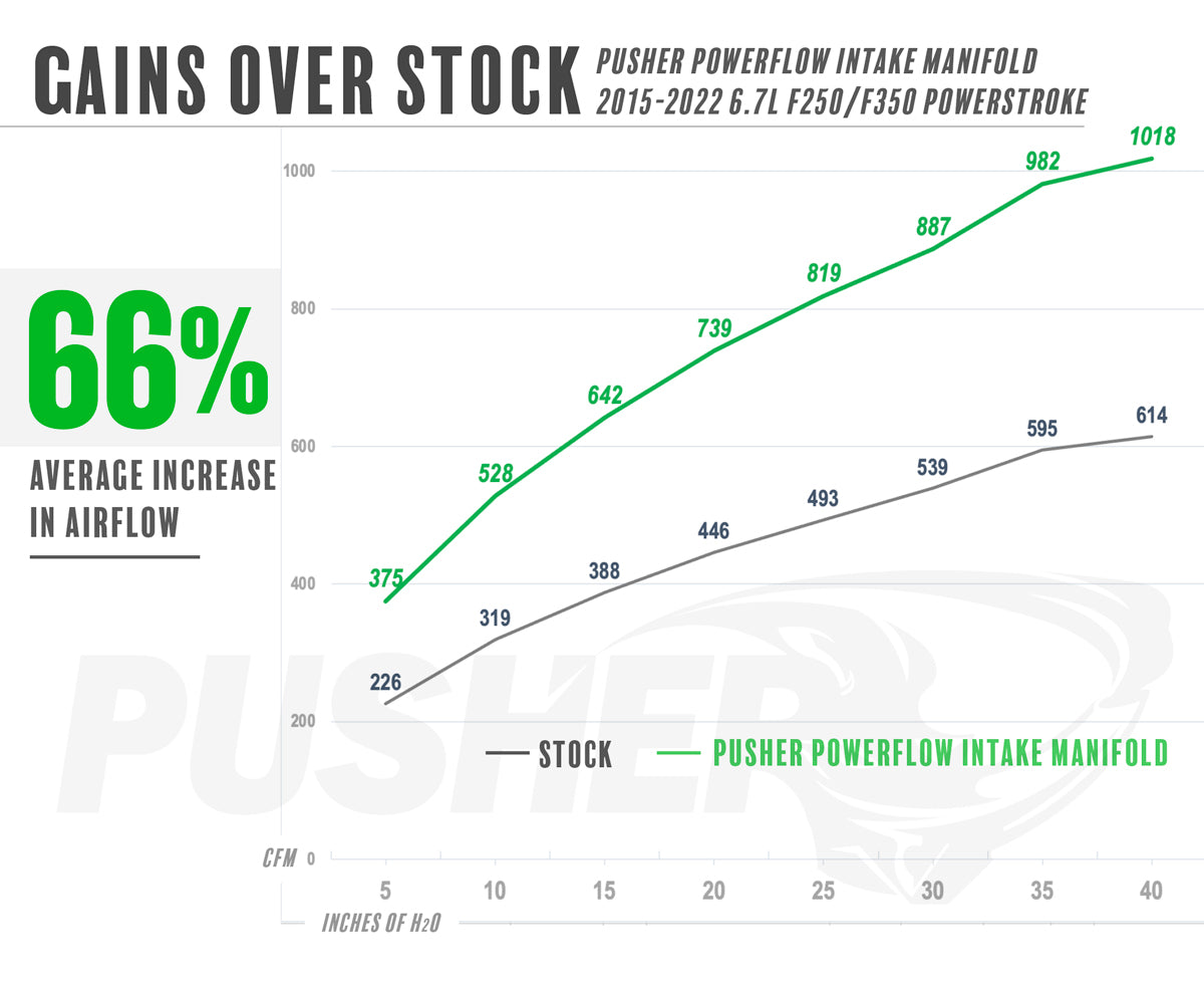 The all-new Pusher Powerflow Intake Manifold / Turbo Inlet Package addresses the weakest airflow component of the 6.7L Powerstroke engine since its inception: the anemic factory intake manifold.